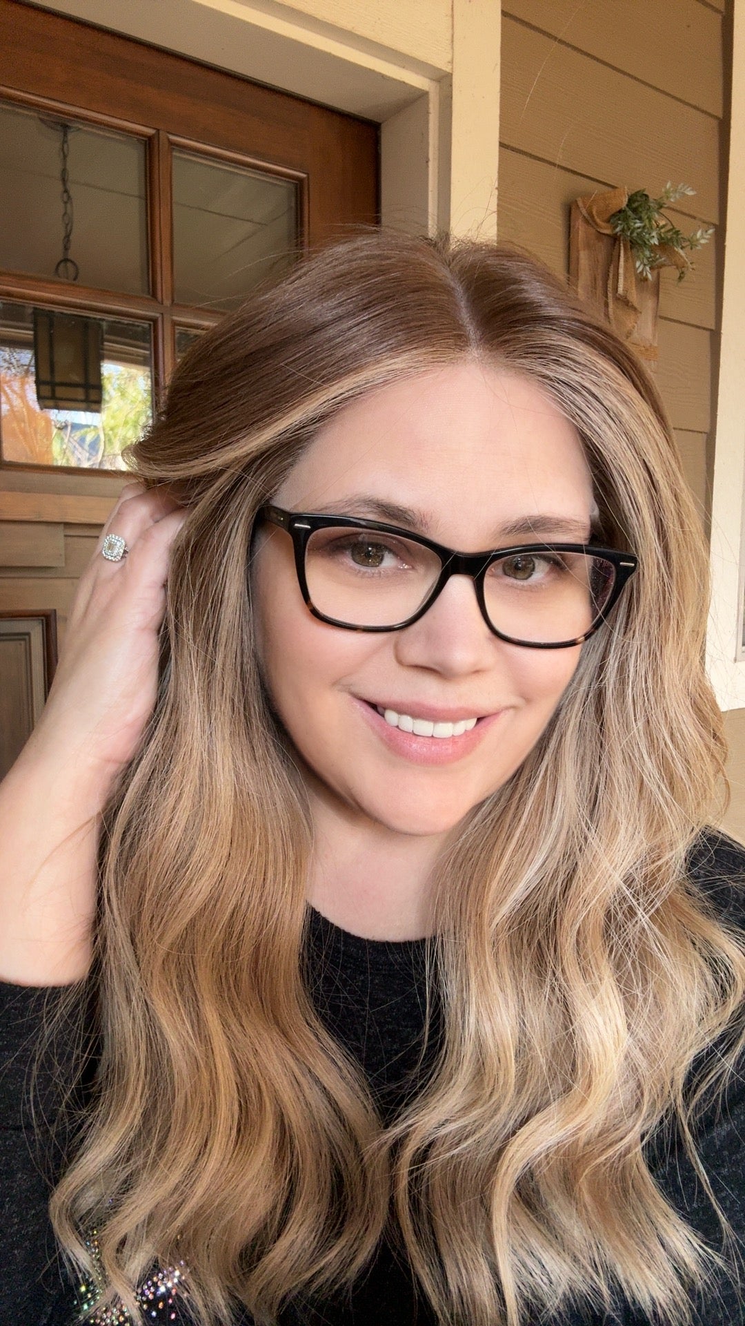 Stunning and shimmering, this dark blonde base with blended blonde balayage highlights makes this lace top wig something to smile about.