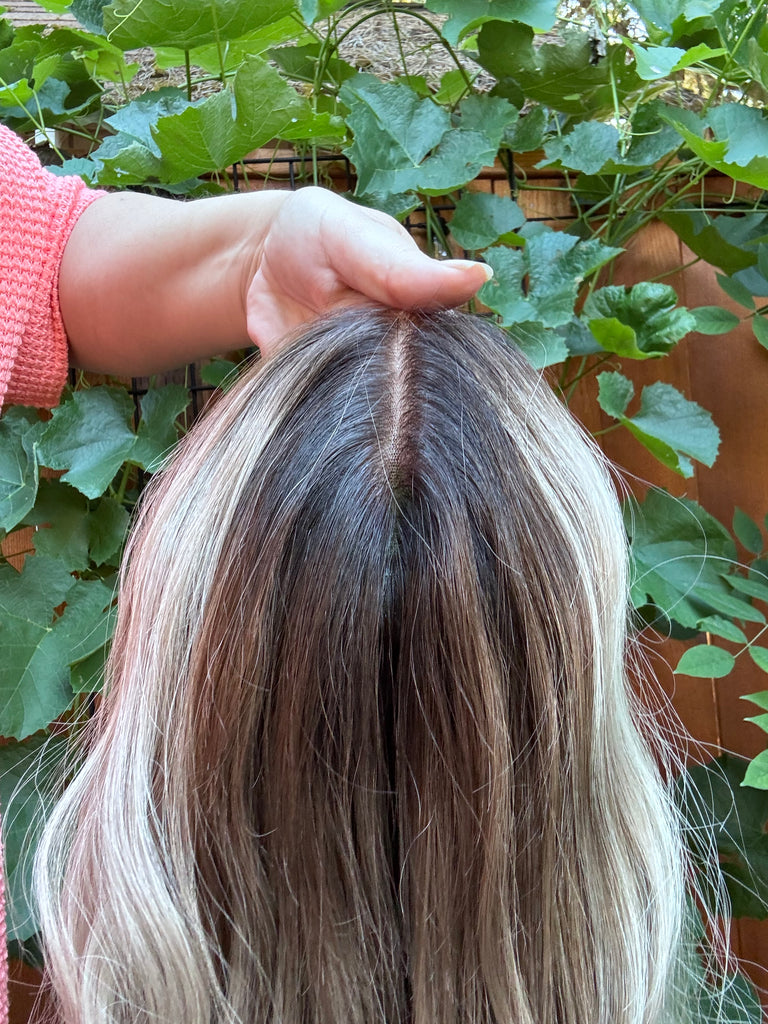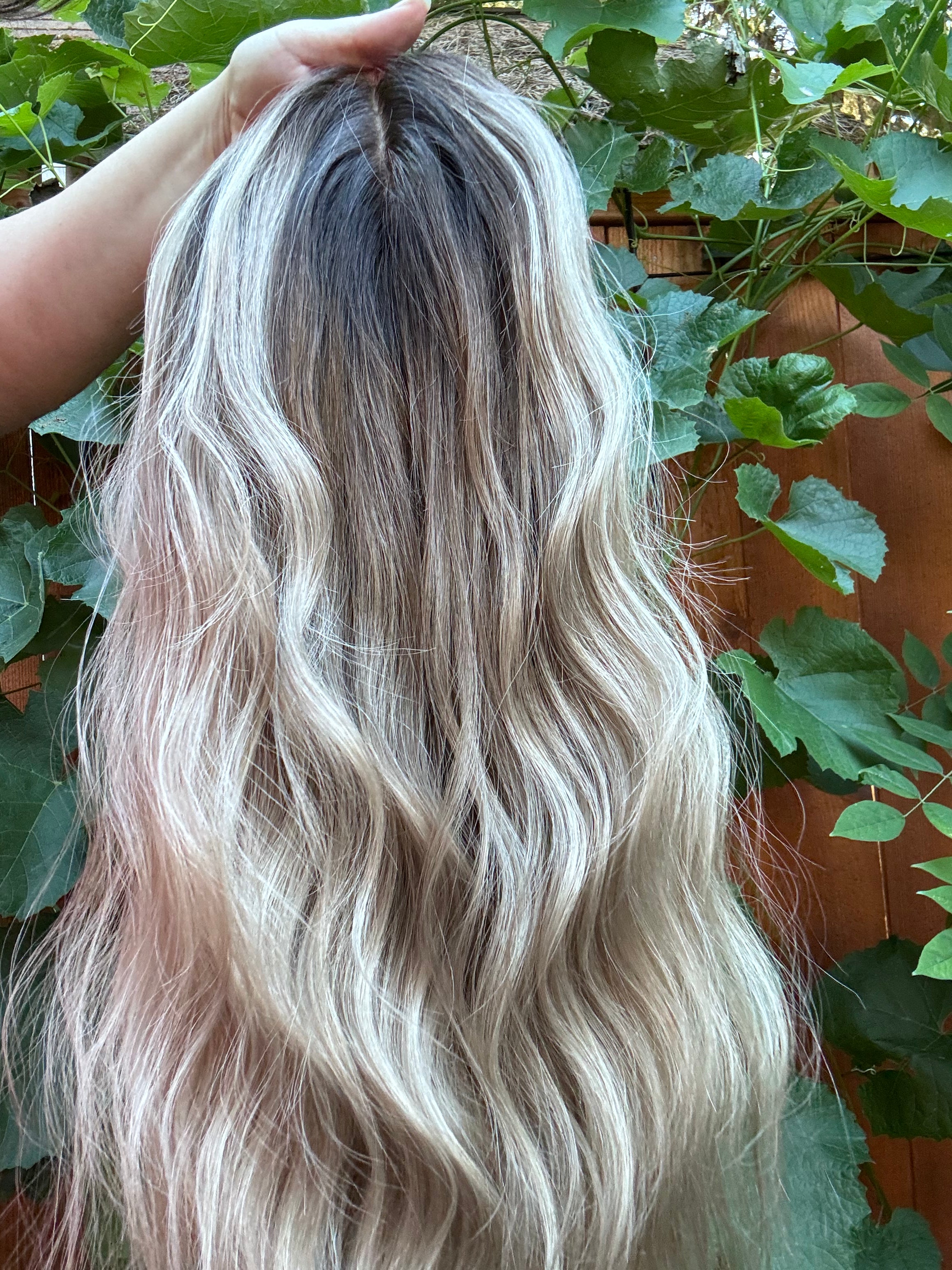 Talia is a stunning custom-colored blonde wig with dimensional highlights. It offers rich depth and beautifully frames the face. This high-contrast blonde features a bold root and a money piece. If you're searching for a long hair wig, this is an excellent choice.
